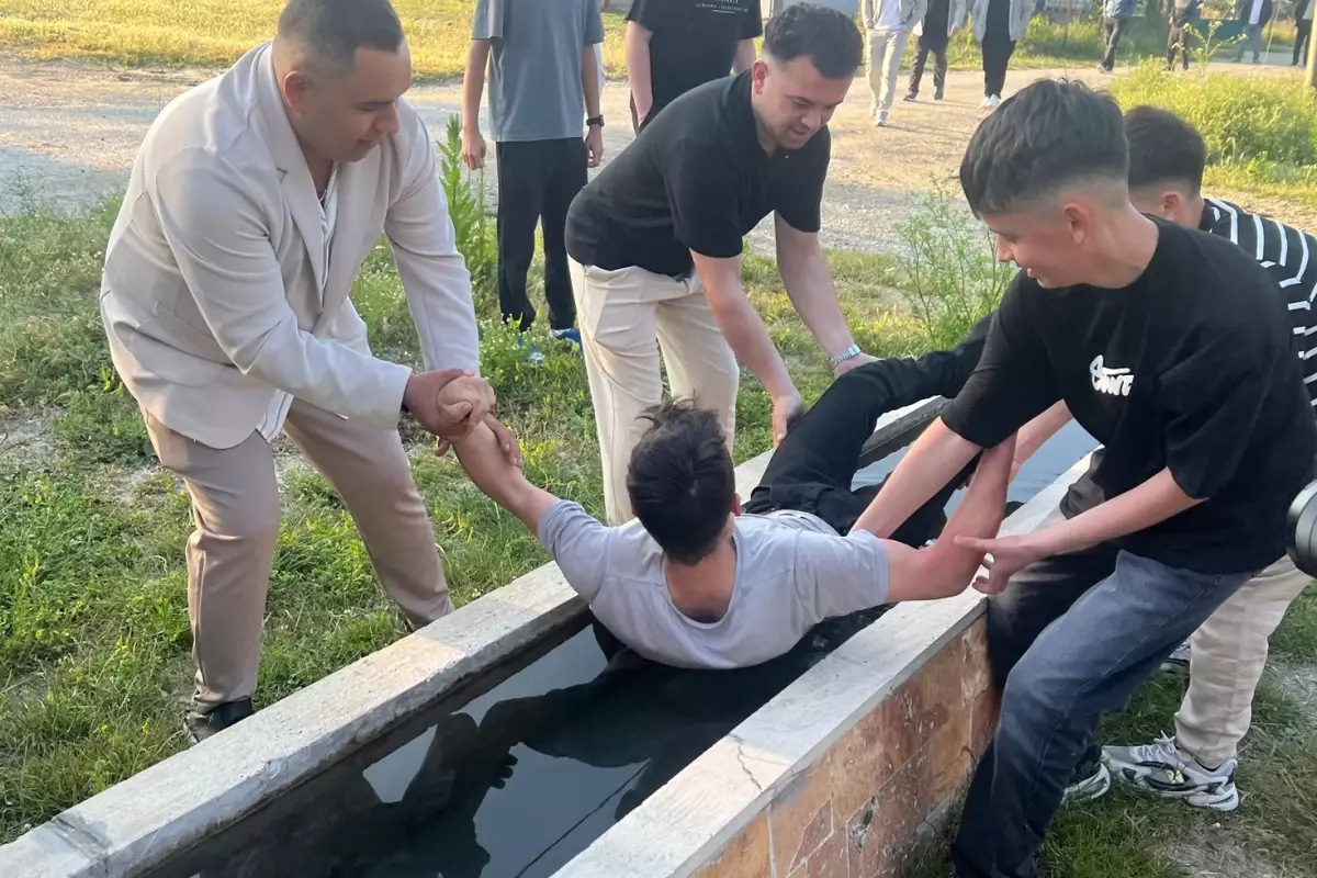 Bolu’nun Mudurnu ilçesine bağlı Munduşlar köyünde bayram namazına gelmeyen bir genç, yatağından kaldırılarak buz üzere suyla dolu oluğa yatırıldı.